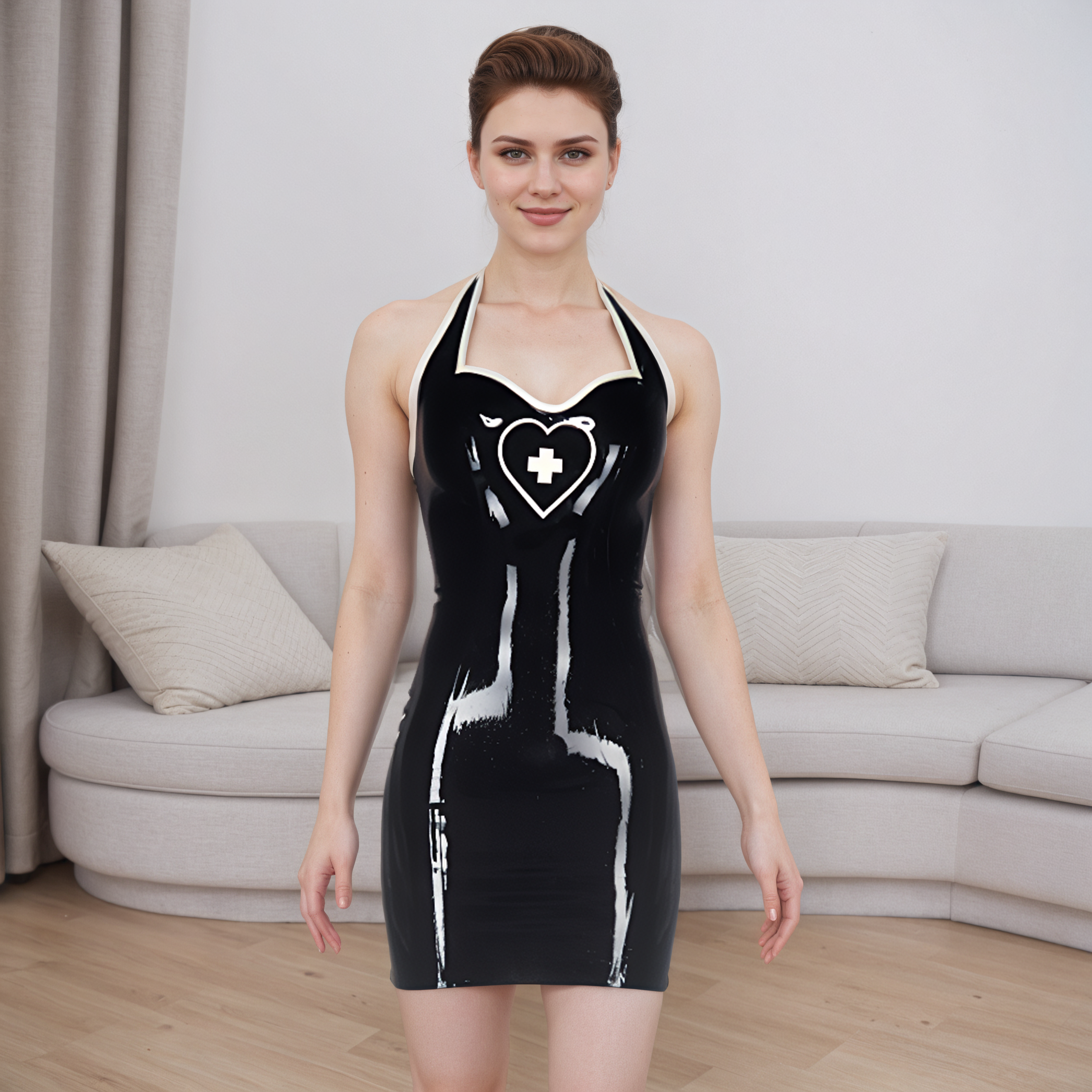 Nurse Cross Detail: The chest is adorned with the classic nurse's cross insignia, set within a contrasting White heart shape. This feature is the focal point, blending uniform theme with playful romance.