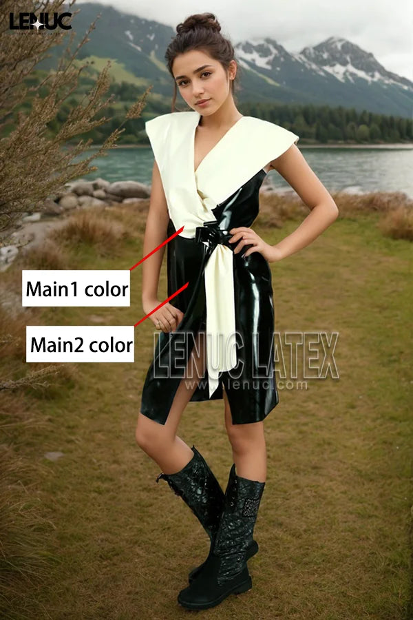 The fabric material is: Natural latex, providing a strong, sleek, and highly reflective "wet-look" appearance.
