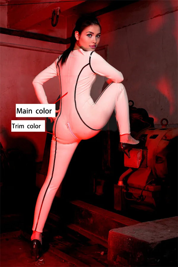 Material & Gloss: Embrace the power of minimalist luxury with the "Monochrome Pulse" catsuit. Crafted from premium 0.40 mm natural latex in a pure, clinical white, this garment is a masterclass in high-contrast design. The material is polished to an elite mirror-shine, creating a brilliant "wet-look" luster that emphasizes the suit’s crisp edges and liquid-like surface.